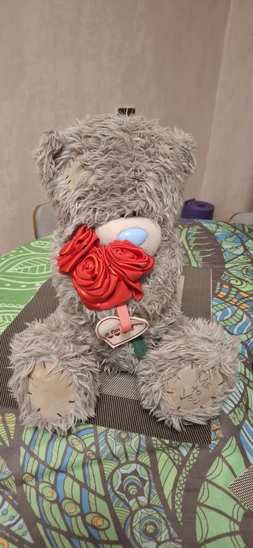 Bu original Teddy Bear "Me to You " ayısı oyuncağı boz rəngli, yumşaq materialdan hazırlanmışdır. Ayının sinəsində qırmızı qızılgüllər və üzərində "I love you" yazısı olan ürək formalı asma bəzək var. Sağ ayağında "ME TO YOU" yazısı , 31 sm dir olcusu . Oyuncağın üz hissəsi açıq rəngdədir və mavi burun detalı ilə tamamlanmışdır. yuyula bilen səthə malikdir. Yaxınlarınıza sevginizi ifadə etmək üçün gözəl bir hədiyyə seçimidir. Moskvadan alinib , yenidir .