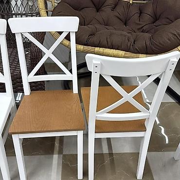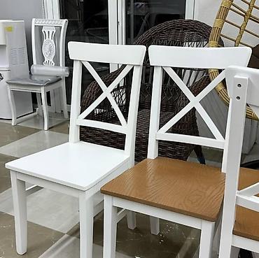 - Yemək/mətbəx stulları: Ağ rəngli karkas, arxa hissədə “X” formalı dayaqlı klassik dizayn. Oturacaq taxta teksturasında boz-qəhvəyi ton. Dörd tərəfdən sabit dayaqlı, rahat oturuş bucağı. Ağ+qəhvəyi və tam ağ oturacaq variantları mövcuddur (şəkildə göstərildiyi kimi).