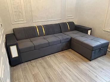 Mebel dəsti - Künc divan: Qara-boz rəngli, sağ tərəfli L-formalı