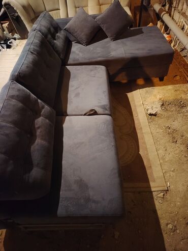 - L şəkilli divan: tünd boz rəngdə, yumşaq süet tipli parça üzlüklə. Rahat arxa hissə, oturacaqlar və uzanmaq üçün chaise bölməsi. Dördbucaqlı, qısa ayaqlar. Dəstdə iki ədəd uyğun dekor yastığı var.