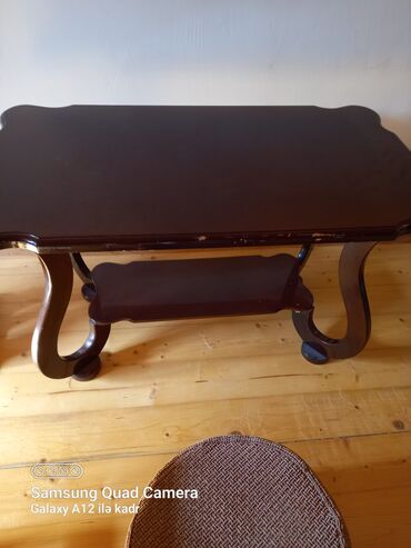 - Qəhvə/çay masası – tünd rəngli, zərif qıvrımlı ayaqlar, üst və aşağı rəfdən ibarət. Dekor, kitab və çay dəsti üçün əlverişli.