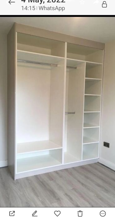 - Qarderob sistemləri: açıq modul quruluş, iki asılqan bölməsi, çoxsaylı rəflər və alt bölmələr – ölçüyə uyğun yığma.