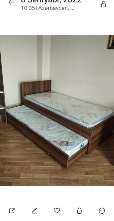 - Uşaq üçün iki mərtəbəli çarpayı: təhlükəsiz nərdivan, alt hissədə əlavə çıxarılan çekmece/saxlama bölməsi, üst və alt yataq üçün ayrı matrass yerləri.