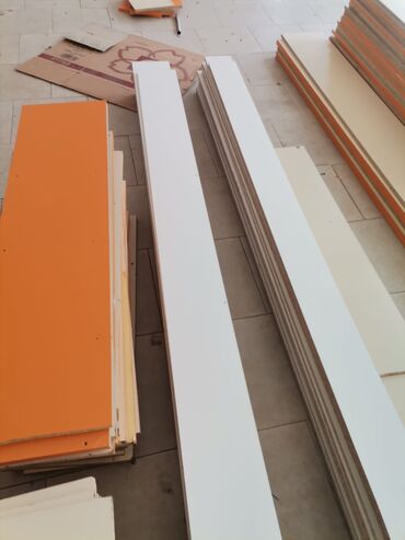 - Təxmini ölçülər: uzun panellər (təxminən 2 m civarı), orta ölçülü rəf panelləri və kiçik tamamlayıcı detallar qarışıq dəst şəklində