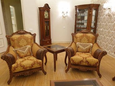 İtalya fabrika istehsalı klassik yumşaq mebel dəsti. 1 böyük divan, 1 kiçik divan, 2 kreslo, 1 böyük və 2 kiçik jurnalni stol. Xalis ağacdan hazırlanıb, üstü naxışlı. Yaxşı vəziyyətdədir. Evdən daşınmaq şərtilə. Məlumat almaq üçün zəng vurun.