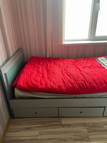 - Tək nəfərlik çarpayı: Başlıqla, alt hissədə 2 çekmecəli saxlama bölməsi. Üstündə matrass və örtük.