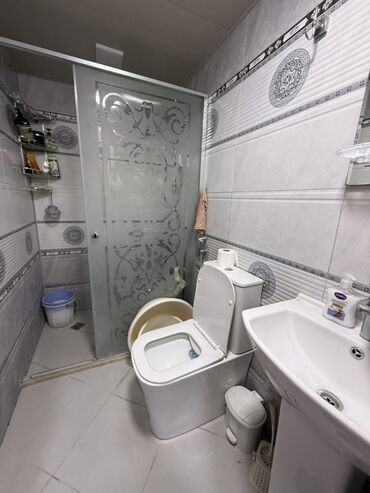 - Duş otağında şüşə sürgülü kabinə, kafel-metlax