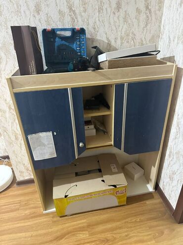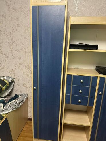 Dolab / Şkaf: 📌 Taxta materialdan, yaxşı vəziyyətdədir. 📌 Geyim asmaq üçün askılıqlar, kitab və digər əşyalar üçün rəflər, qapalı dolab və çekmecələri mövcuddur. 📌 Ev və ya ofis üçün çox əlverişlidir.