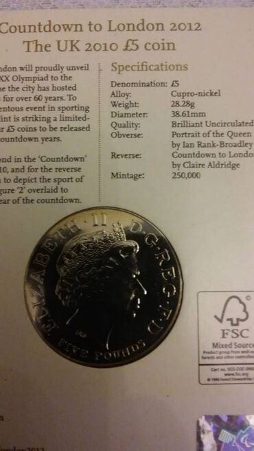 Ödənişli çatdırılmaÜnvandan götürməМедно-никелевая монета 5 фунтов Elizabeth II, Countdown to London 2012, XXX Олимпийские Игры в Лондоне, 28 гр.