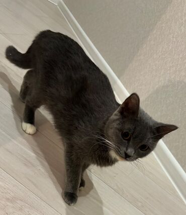 Boz-ağ rəngli zərif pişik - Rəng: tünd boz kürk, sinə, pəncələr və burnunda ağ ləkələr - Gözlər: sarı-qızılı - Aksessuar: yaşıl boyunluq - Xarakter: sakit, mehriban, insanlara öyrəşmiş; qucaq və s...Giriş•Qeydiyyat