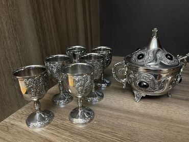 Şəkər qabı, qaşıq və 6 ədəd kiçik badə