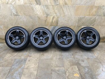Məhsul: 5 ədəd tam komplekt təkər və disk dəsti - 4 ədəd yüngül lehimli Mercedes diski, 5 boltlu, zavod ornamentli (gümüş rəng). Disk üzərində Mercedes loqolu mərkəz qapaqları görünür. - 1 ədəd eh...