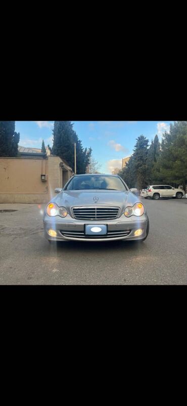 Mercedes-Benz C-Class sedan - Korpus: 4 qapılı sedan, bej/metallik rəng - Nömrə: 99-UE-647 (AZ) - Kuzov: W203 seriyasının xarakterik ön panjuru və ikili dairəvi faralar - Təkərlər: çoxşüalı yüngül...