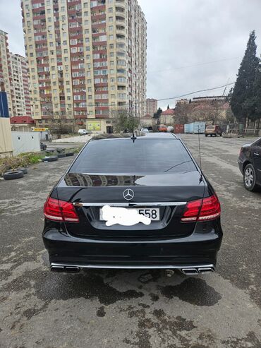 Mercedes‑Benz E‑Class sedan – qara rəng, AMG üslubunda eksteryer detalları.