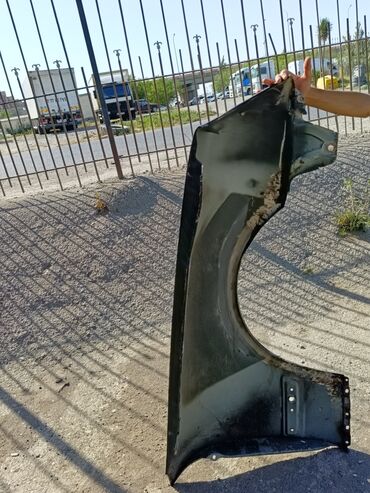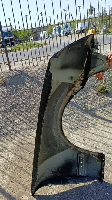 Məhsul: Avtomobil üçün ön sağ qanad (fender), ağ rəng. Xüsusiyyətlər: - Korpus: metal, fabriki forması saxlanılıb - Rəng: ağ (üzərində qara boya/qoruyucu qalıqları görünür) - Tip: ön sağ qanad (tə...