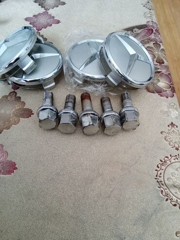 Ünvandan götürməMercedes təkər boltu və təkərin ortasına emblem işlənmiş ancaq əla vəziyyətdə 5 dənə boltdu 1 ədədi 3manatdı xromdu qara deyil!