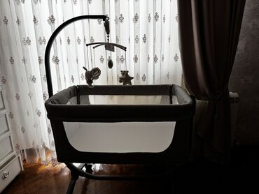 Beşik – yanları mesh pəncərəli, tünd boz rəngdə, reluks formalı dayaq konstruksiyası ilə.