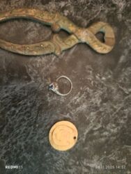 - Üzük: gümüş rəngli korpus, üst hissədə mavi rəngli daş (façetli), yanlarda dekorativ elementlər.