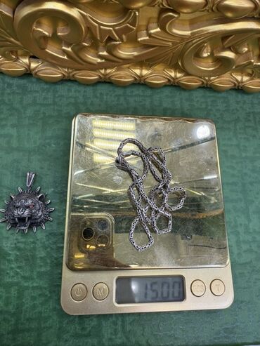 - Materiaal: gümüş hazırlanmış zəncir və medalion