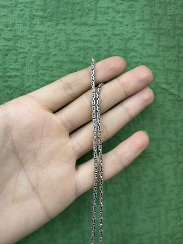 Gümüş rəngli zəncir boyunbağı - Material: metal, gümüş rəng - Zəncir forması: sıx hörgülü, dörd tərəfli toxuma (görünüşcə kral/“byzantine” tipli) - En: təxminən orta–eni qalın hörgü - Uzunluq: sta...