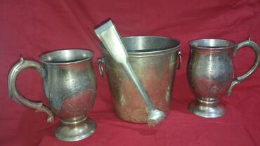 - Tərkib: 1 ədəd metal buz vedrəsi (yanlarda halqa tutacaqlar), 1 cüt buz tutacağı (maşa), 2 ədəd iri metal krujka.