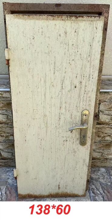 - Metal qapı: 138×60 sm. Dəmir çərçivə, tutacaq və menteşələr üzərində.