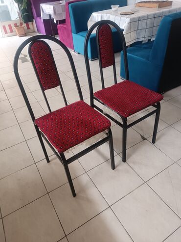 QatlanmayanQırmızı rəngli oturacaq və kürəyi olan, qara metal çərçivəli iki ədəd stul. Bu stullar mətbəx, yemək otağı və ya kafe üçün uyğundur. Yığcam dizaynı sayəsində az yer tutur.4 eded 1 ededi 13 manat.