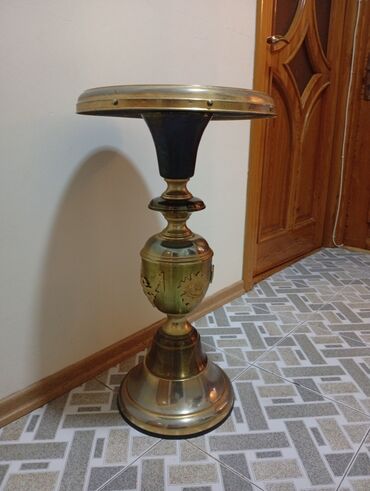 - Ölçü təxmini: hündürlük orta (yan masa/servis masa hündürlüyü), üst diametri kiçik–orta ölçülü