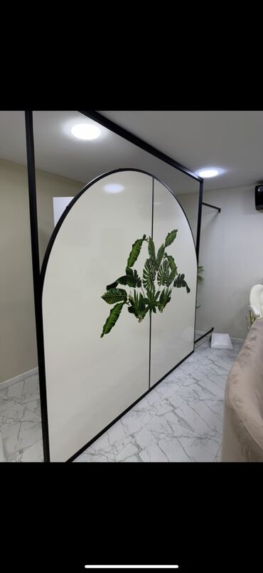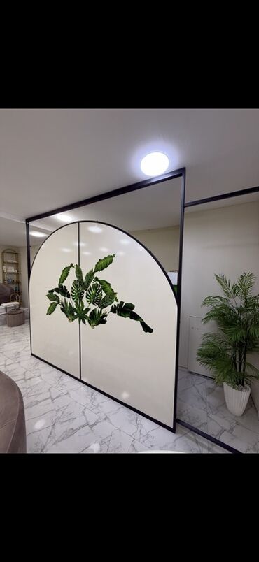 Alüminium çərçivəli sürgülü şüşə panellər - Material: möhkəm alüminium profil və mat/opak şüşə (işıq keçir, baxışı kəsir) - Rəng: açıq boz alüminium çərçivə, ağ şüşə səth - Quruluş: yuxarı-daşıyıc...