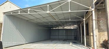 naves - Geniş həyət üçün nəzərdə tutulmuş metal konstruksiyalı kölgəlik (avtotəmir/parkinq üstü). Yarımtağ dam forması, möhkəm sütunlar, yan relslərlə. - İki girişli sistem: yan pəncərəli/personaj...
