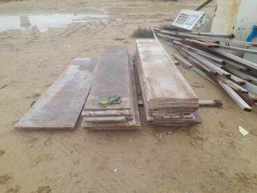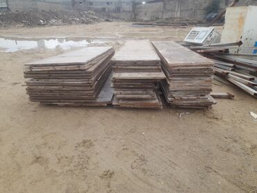 Metal lövhələr – müxtəlif ölçülü ağır polad təbəqələr Xüsusiyyətlər: - Material: qalın polad/metal - Ölçülər: bir neçə müxtəlif ölçü var (uzun düzbucaqlı və kvadrat lövhələr) - Səth: kobud, sənaye...