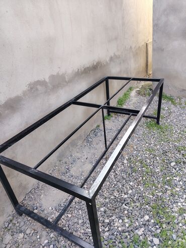 - Düzbucaqlı masa/stellaj karkası: möhkəm metal profildən, üst səth üçün taxta və ya digər panel yerləşdirmək imkanı. Emalatxana masası, bağ masası, mətbəx ada karkası, akvarium dayağı və ya anbar stellajı kimi funksional istifadəyə uyğundur. Çarpaz əlaqələr yükdaşımanı artırır.