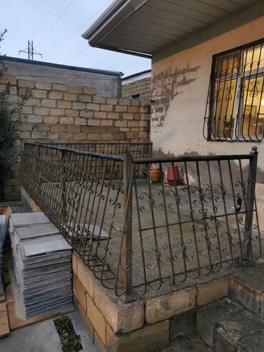 Ünvandan götürməMetal məhəccər. Sökülüb, Yaxşı vəziyyətdədir. Bir neçə hissədən ibarətdir. Hissələrin ölçüləri; (4.5+3+1.55+1.1+1.1+0.4)=11.5 metr. Hündürlüyü 90sm.