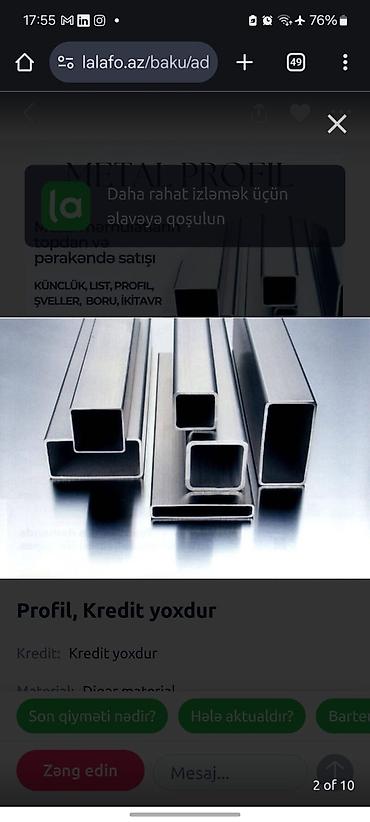 Profil, Polad, 12 m, Ünvandan götürmə, Pulsuz çatdırılma, Ödənişli çatdırılma, Kredit yoxdur