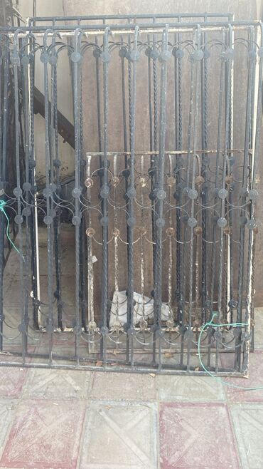 - Dekorativ dəmir barmaqlıq paneli: bükmə naxışlı şaquli şpilkalar, dairəvi elementlər və yuxarıdan tutacaq travers. Pəncərə, eyvan və ya giriş üçün uyğun.