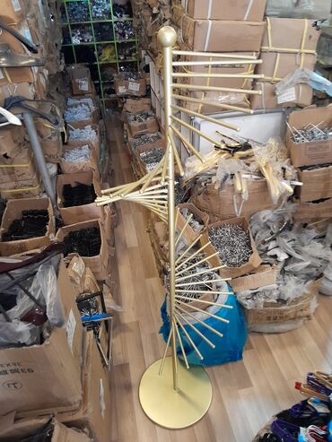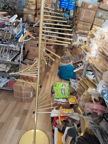 Mağaza vitrini üçün qızılı rəngli metal asılqan və stendlər dəsti (istənilən növ vitrin üçün asılqan və stendlər mövcuddur) - Material: parlaq qızılı örtüklü möhkəm metal konstruksiya - Təyinat: g...