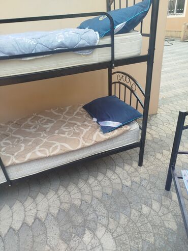 - Dizayn: yuxarı və aşağı hissədə dekorativ metal başlıqlar; yuxarı mərtəbə üçün təhlükəsizlik məhəccəri