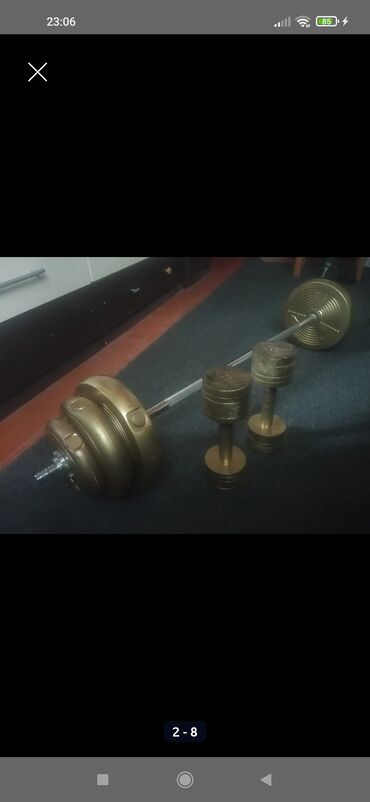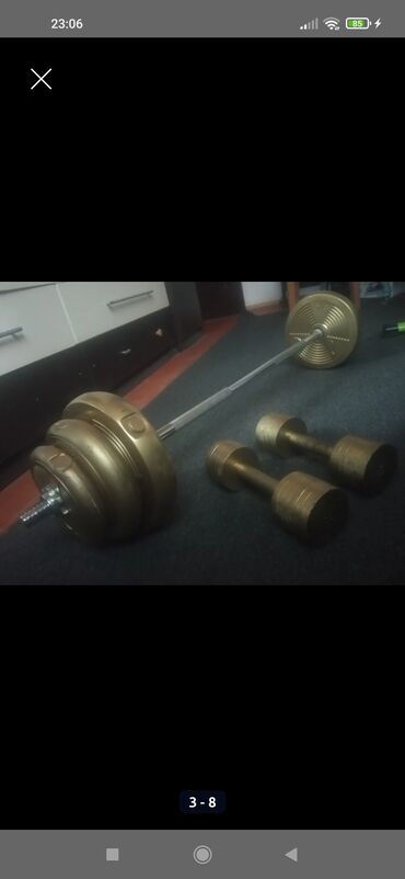 Ağırlıq ştanqası komplekti Diqqətlə oxu. F-50 modeli, 50 kq-lıq ştanq satılır, işlənmişdir lakin çox yaxşı vəziyyətdədir, düşdüyü yeri zədələmir, keyfiyyətli möhkəm rezindəndir, və pas atmır. Q...