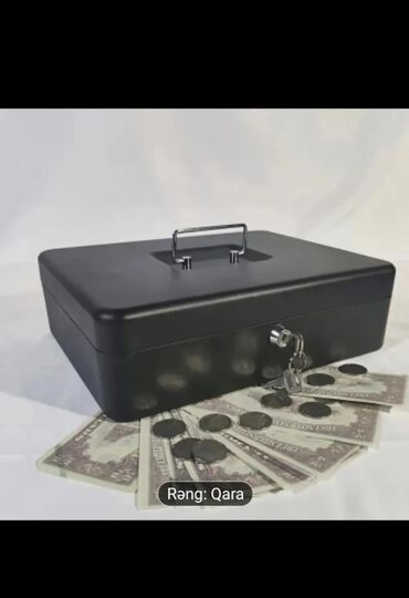 Metall pul qutusu – açarlı - Ölçülər: 30 x 24 x 9 sm (11.81 x 9.45 x 3.54 inç) - Rəng: Qara - Material: metal korpus, parlaq xromlaşdırılmış kilid və daşıma tutacağı - Kilidləmə sistemi: mexaniki ...