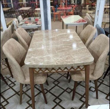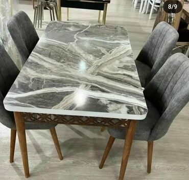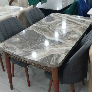 Masa laminat material mermer teksturali olcu 130×80,acilanda 170×80 + 4 eded oturacaq ✔️