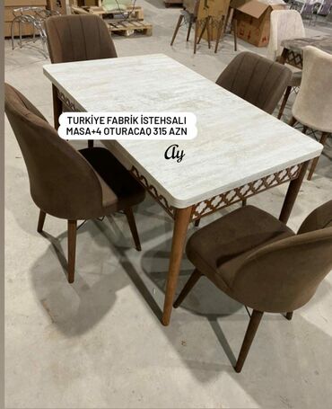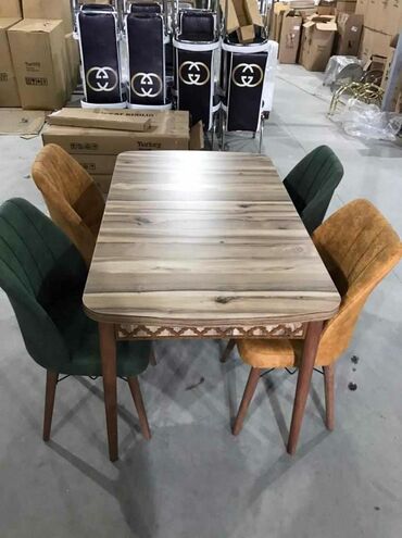 Mətbəx üçün, Yeni, Açılan, Dördbucaq masa, 4 stul