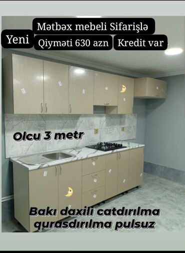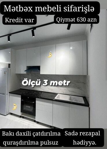 Sifarişlə mətbəx dəsti, Özü çəkən petlələr, Sadə laminat, Kredit yoxdur, Pulsuz çatdırılma