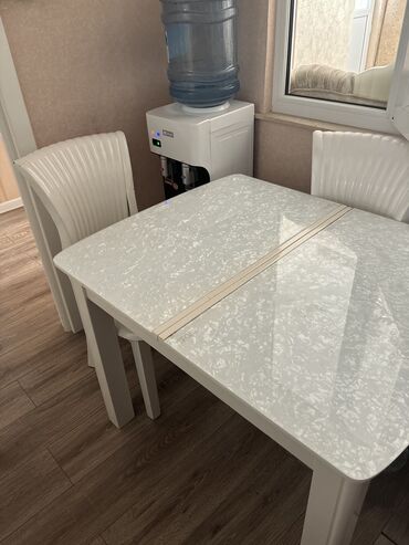 Ağ rəngli masa və 4 ədəd stuldan ibarət dəst