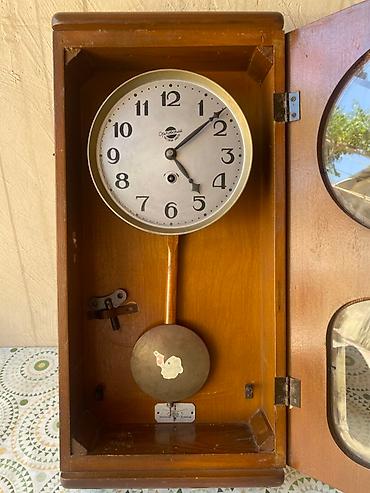 Divar saatı – mexaniki, pandullu - Korpus: laklı təbii ağacdan, klassik düzbucaqlı forma - Siferblat: səkkizguşəli çərçivə, Roma rəqəmləri, qara visirlər - Mexanizm: mexaniki qurma (açarla qurulan...