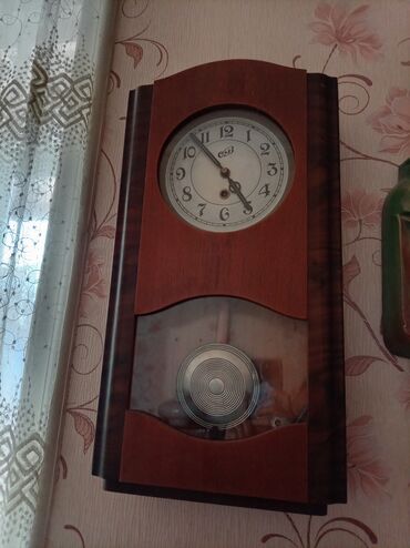 Divar saati – mexaniki, pendulumlu - Korpus: cilalanmış təbii ağac, klassik retro dizayn, yuxarı hissədə dekorativ relyef element. - Siferblat: səkkizguşəli çərçivəli, ağ əsas, qara ərəb rəqəmləri...