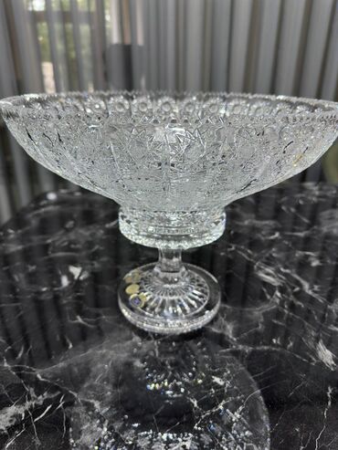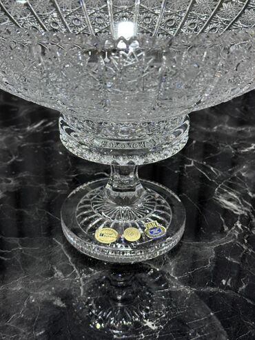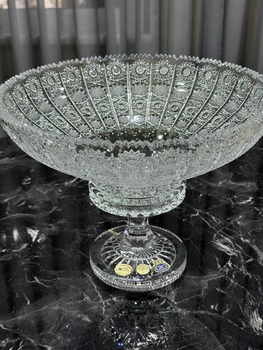 Meyvə qabı Bohemia Tərkibi 24% massikot mineraldan (PbO) ibarət xrustal, Çexiyanın Bohemia şüşəsindən əl işi hazırlanmış meyvə qabı. Diametri 377 mm. Qiymətdə endirim mümkündür. 📍Yeri: Binəqədi r-...
