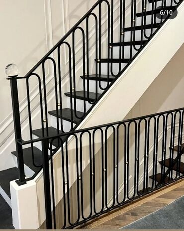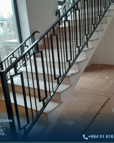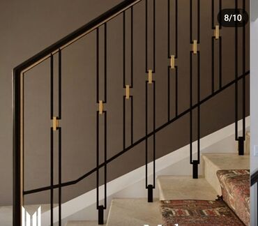 Paslanmayan poladdan (inox) pilləkan və eyvan məhəccərləri - Material: parlaq inox/profil borular, qızılı dekorativ birləşdiricilər və başlıqlar - Konstruksiya: ikiqat dayaqlı sütunlar, 3–4 üfüqi ...