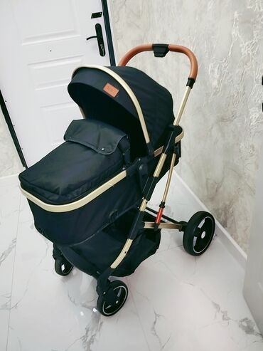 Estetik və funksional şəhər arabası: rahat sükan, yaxşı amortizasiya, geniş səbət və tam örtülü ayaqörtüyü ilə müxtəlif hava şəraitinə uyğun. Qara parçaya qızılı haşiyələr və çərçivə zərif görünüş yaradır.
