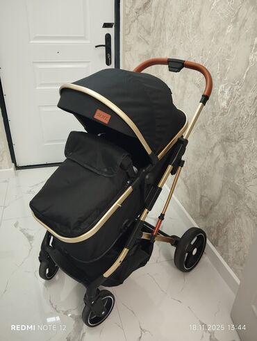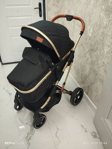 Uşaq arabası – MHL brendi, qara rəng, qızılı çərçivə və detallar