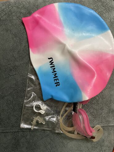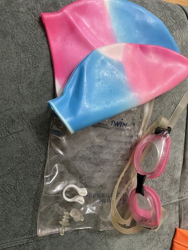 Üzgüçülük üçün şişmə qolluq, papaq və eynək. Eynək speedo, papaq isə Quick markasına məxsusdur. Qolluq üzərində 1-6 yaş yazılsa da arıq adama ( S geyinen) da gedir. Defekti yoxdur heç birinin. Hamı...